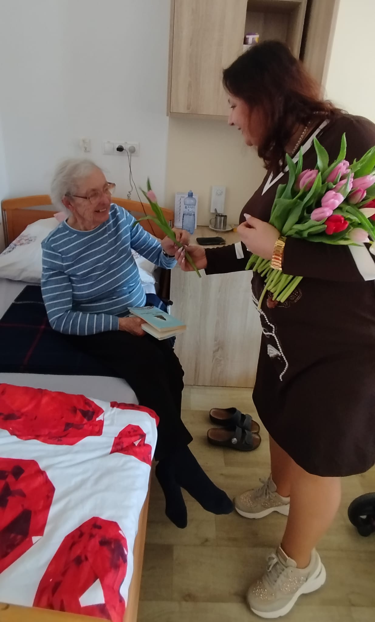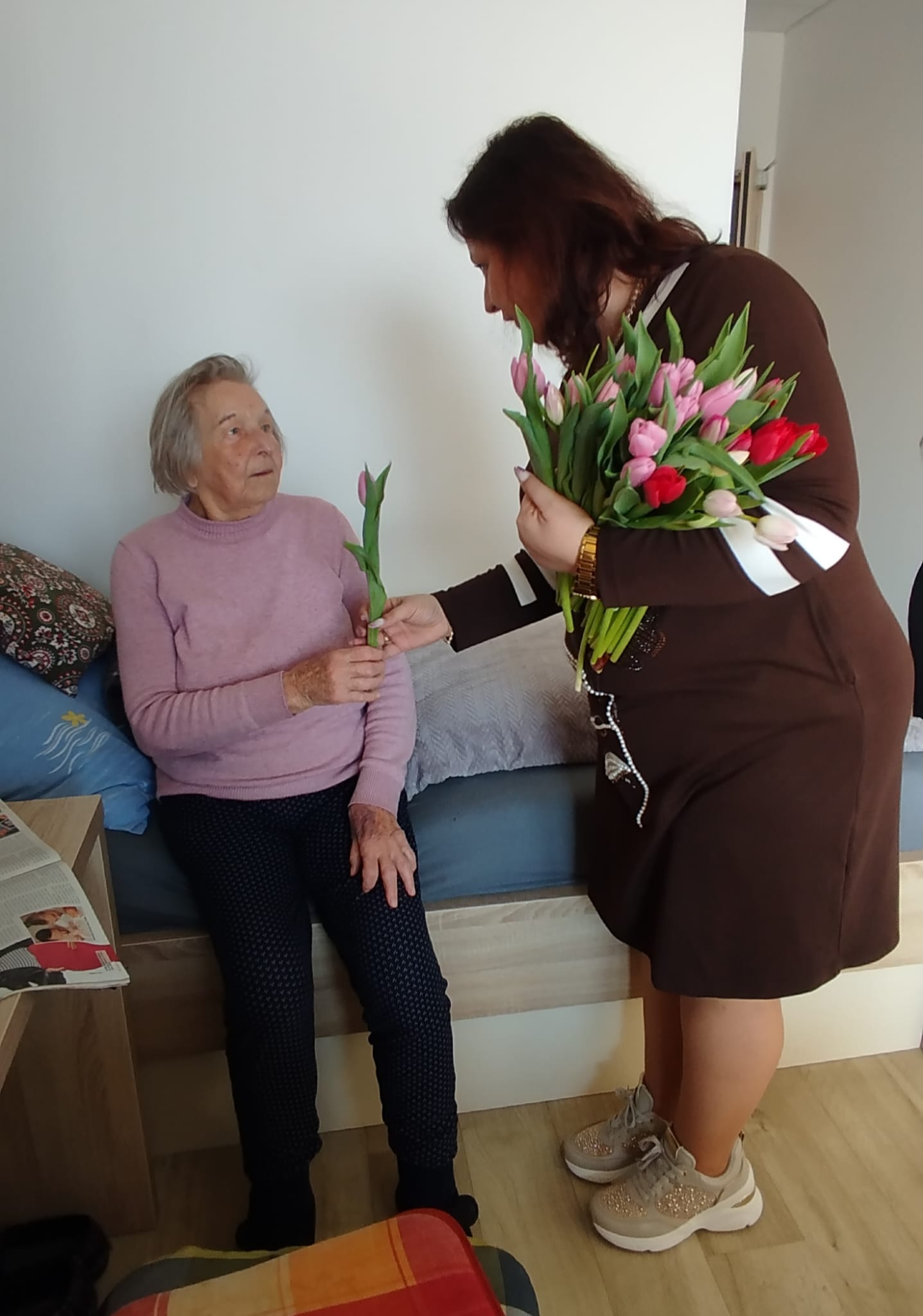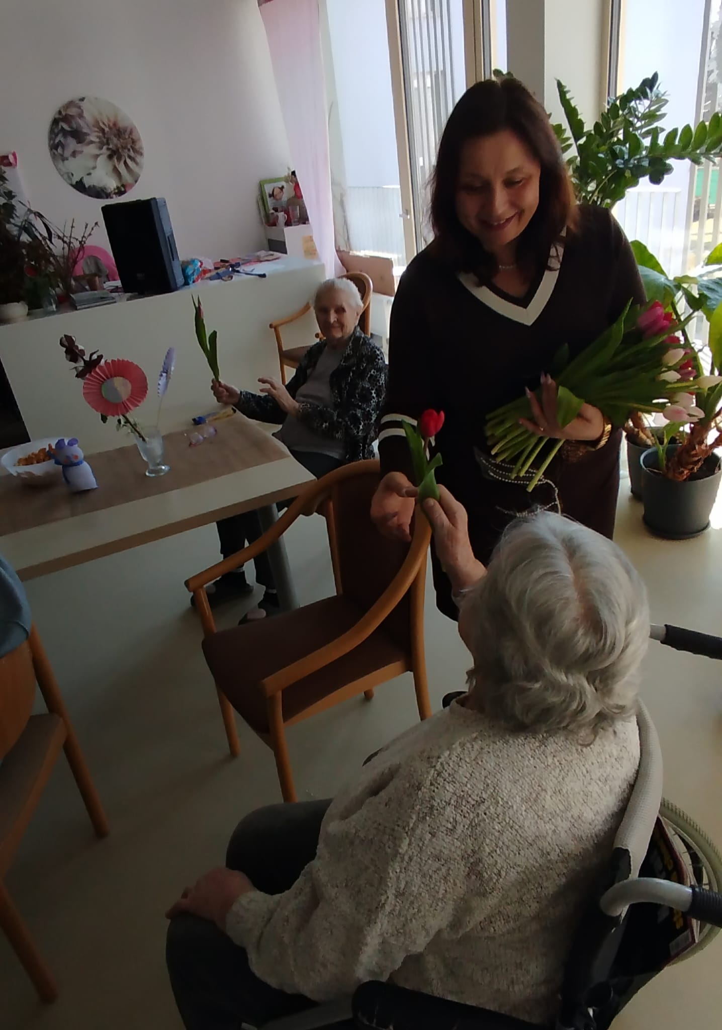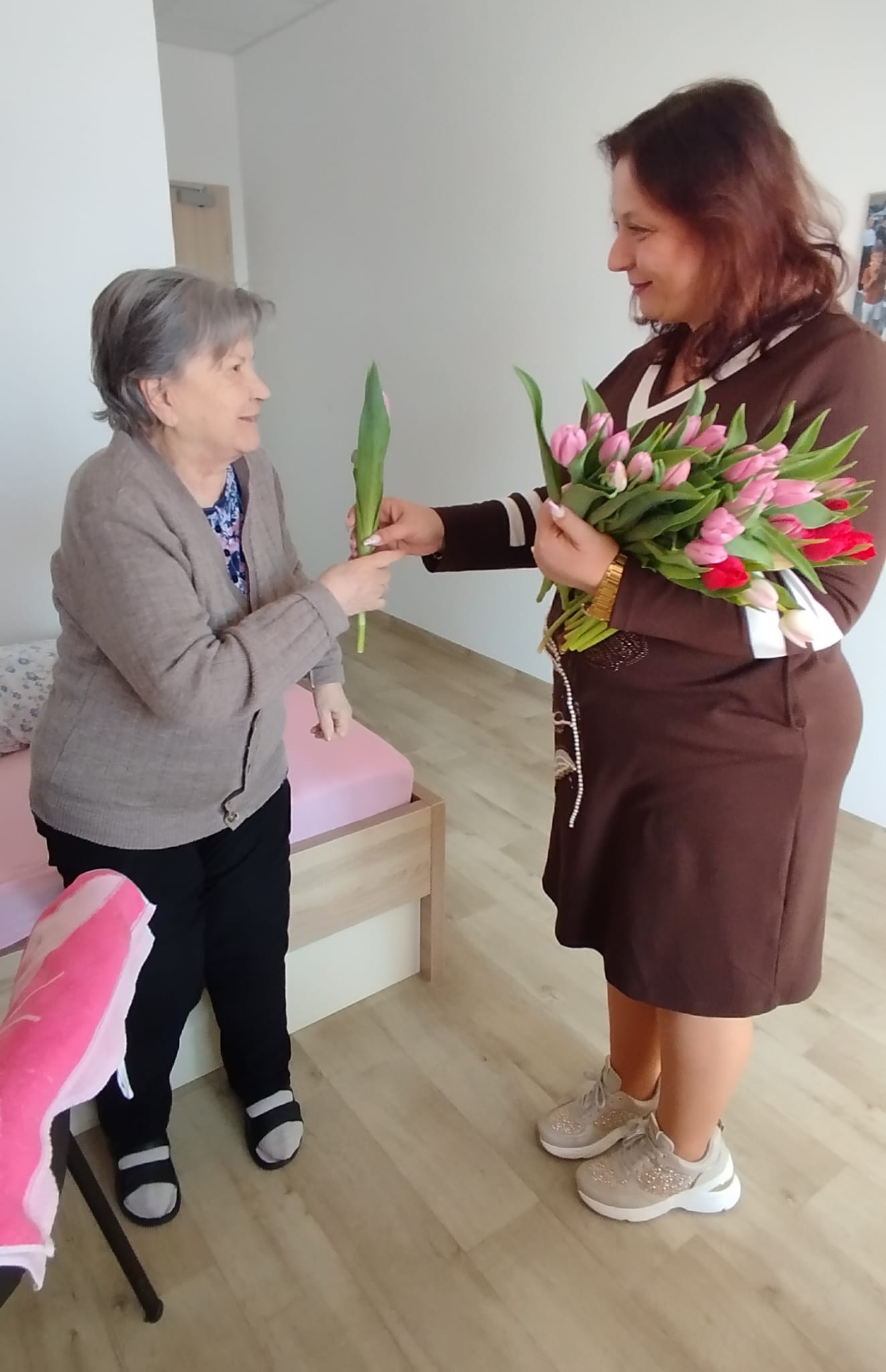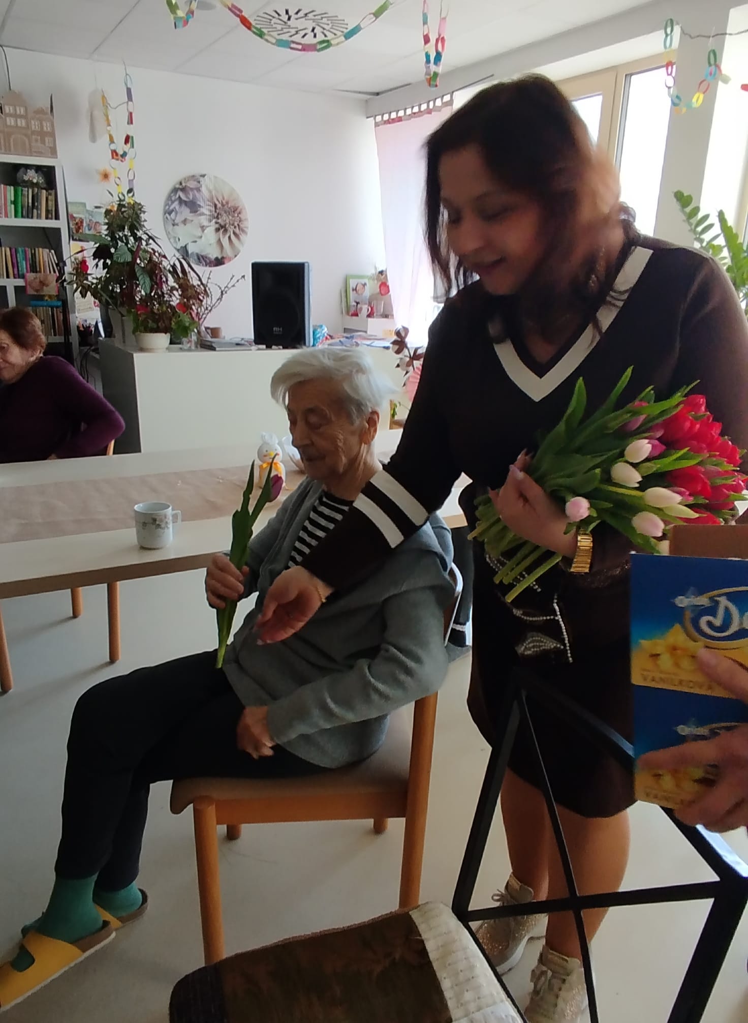 Hoci je dnes ešte len piatok, u nás v zariadení sme si už pripomenuli blížiaci sa Medzinárodný deň žien. Naše klientky sme potešili malou pozornosťou v podobe kvietka a sladkej maškrty. Nechýbali úsmevy, milé slová a príjemná atmosféra, ktorá spravila tento deň ešte krajším.